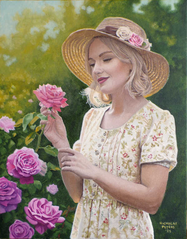 Throughout the years, Nicholas has primarily worked on commission, with his first sale being a large pencil drawing of the Chicago Board of Trade commissioned by a trader. He has since completed numerous pencil portraits from photographs and has expanded his repertoire to include oil painting. Alongside portraiture, Nicholas is passionate about graphic design, woodworking, and all things creative.